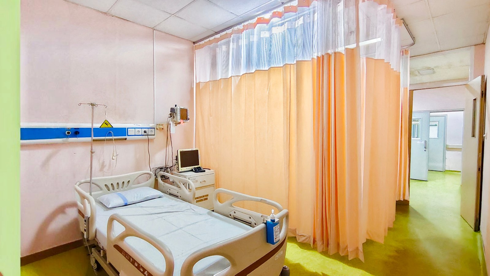 - Tirai Kamar Rawat Inap: Memisahkan antar tempat tidur pasien dengan material tirai pembatas pasien yang mudah dibersihkan dari tumpahan cairan.